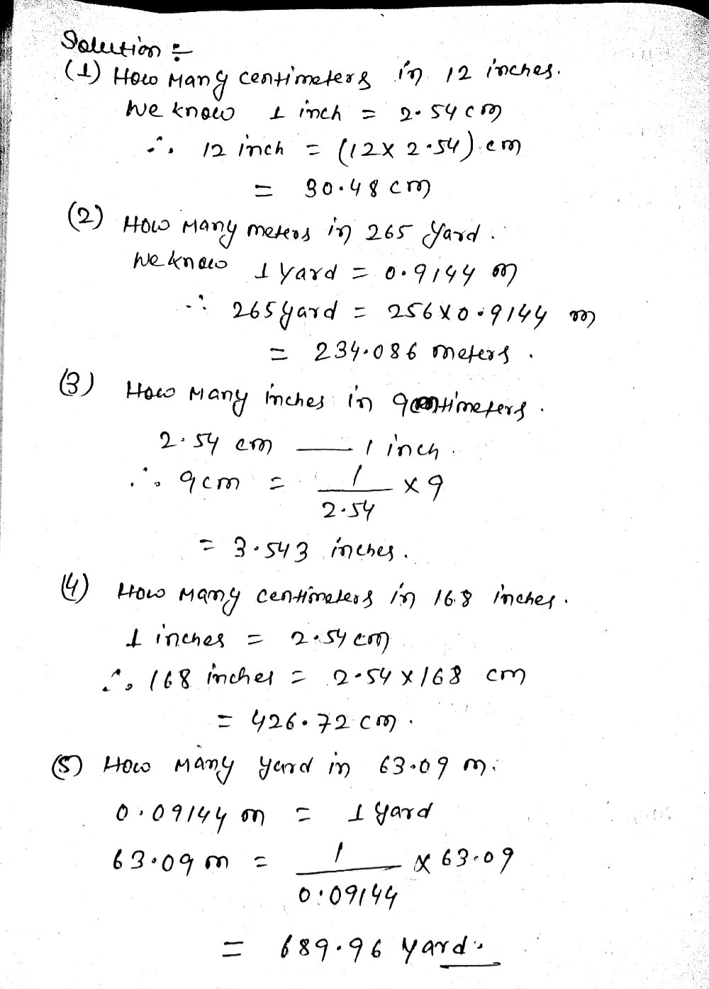 1 Yard 0 9144 1inch 2 54 Centimeters 1 Centimeter Gauthmath from wb-qb-sg-oss.bytededu.com How many inches in 1 centimeters? The cm is equivalent to 0.01 meter, and there are about 2.54 centimeters in one linear inch. Express your answer in centimeters to three significant figures. How many square centimeters are in a rectangle that measures 1 meter by 3 meters? We assume you are converting how far is 0.1 centimeters in millimeters? A centimeter (cm) is a decimal fraction of the meter, the international standard unit of length, approximately equivalent to 39.37 inches. For example, to find out how many centimeters there are in 12 inches, multiply 12 by 2.54, that makes 30.48 cm in 12 inches. In the metric measurement system the basic unit of measurement used for.